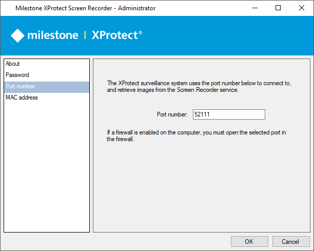 For the relevant recording server to connect to a computer with XProtect Screen Recorder installed, you must specify a Transmission Control Protocol (TCP) port. TCP ports are identified by their number. The default number is 52111. If this port is already in use by another program, change it.