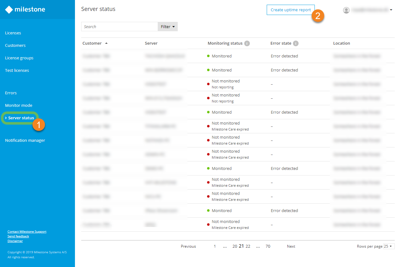 - Location - The report contains information about all servers at specific locations independent of customers and licenses