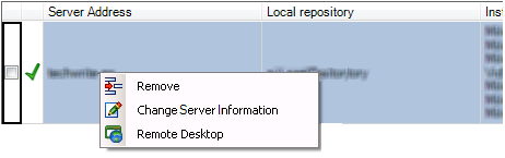 The following menu options appear: Remove, Change Server Information and Remote Desktop.