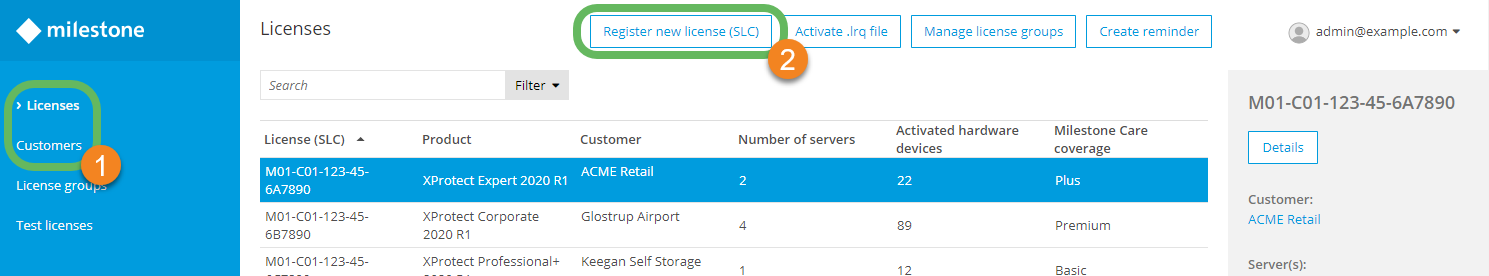 Register software license codes (SLCs) in Milestone Customer Dashboard