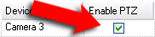 - In the list of devices connected to the video encoder, select the Enable PTZ box for the relevant cameras: