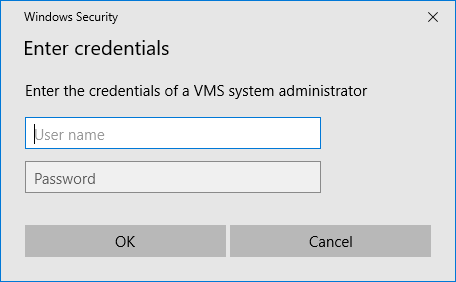 - Enter the user name and password of a system administrator of XProtect and click OK.