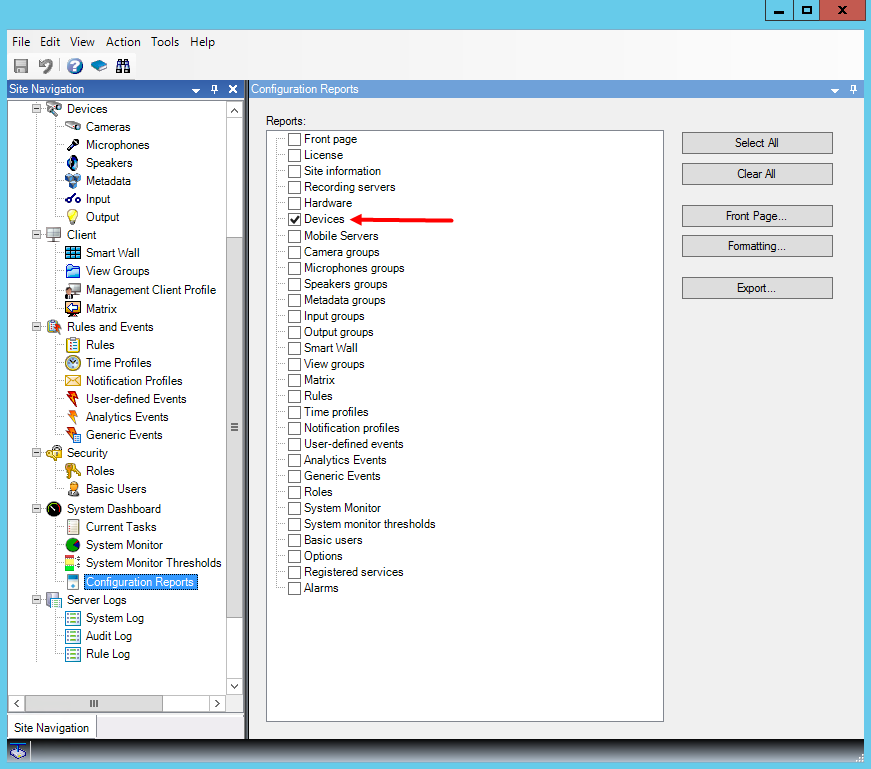 - Under Configuration Reports, select the Devices report.