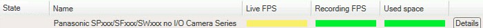 The State field shows the camera's state. For example, a red warning is shown if the connection to the device is broken. The icon includes a tooltip with a short description of the issue that is causing the warning.