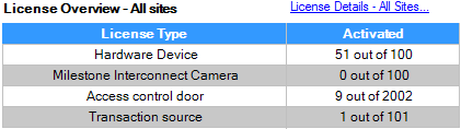 現在のライセンス数を超えて、その他のハードウェアデバイス、Milestone Interconnectシステム、またはドアを追加する場合または既に追加した場合、追加ライセンスを購入し、デバイスがデータをシステムに送信できるようにする必要があります。