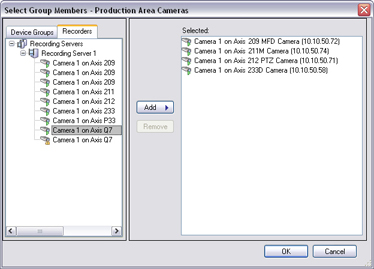 以下の例は、カメラのデバイスグループへのグループ化に基づいていますが、原則はすべてのデバイスに適用されます。