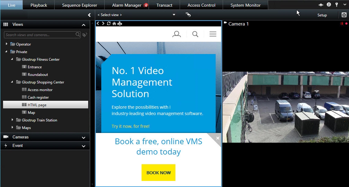 Webページをビューに追加できます (HTML、PHP、ASPページなど)。これは、オンライン手順を提供したり、カメラまたは他のタイプのコンテンツと組み合わせて会社のWebページを表示したりする際に役立ちます。