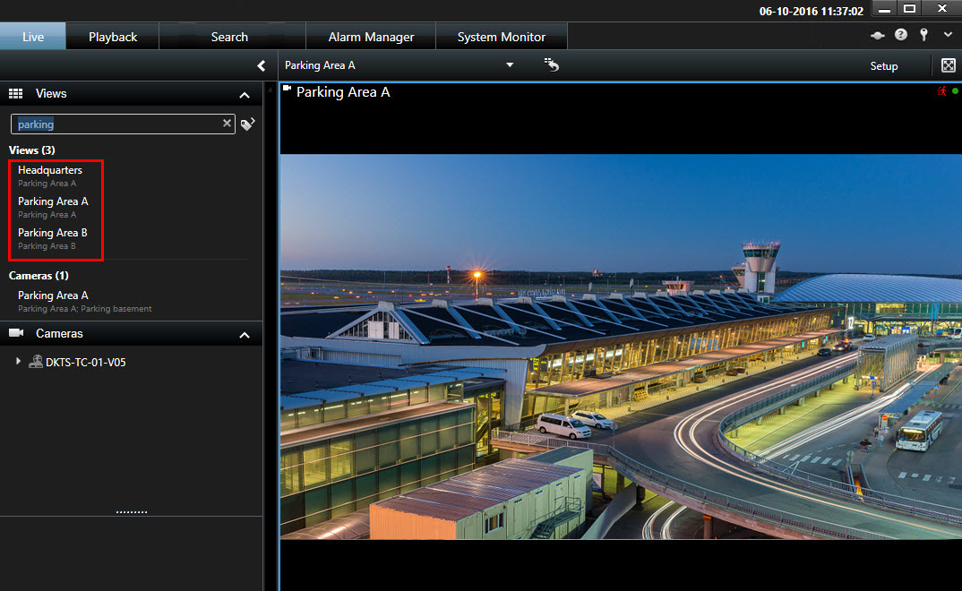 ビューグループが大規模または複雑な構造をしている場合、この検索機能によってナビゲーションが容易になるほか、複数の階層にわたってビューとカメラを検索できるようになります。