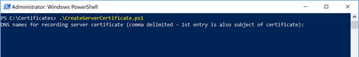 - In PowerShell at the prompt, enter .\CreateServerCertificate.ps1 and press Enter.