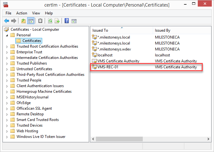 After you have installed the CA certificate on all the clients, you are ready to create certificates to be installed on all computers that run servers (recording servers, management servers, mobile servers or failover servers).