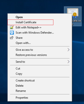 - Right-click on the certificate and select Install Certificate.