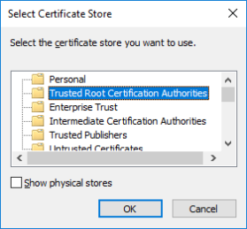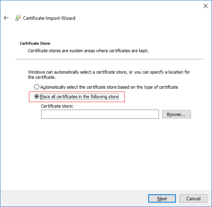 - Select to manually locate the store in which the certificate will be installed.