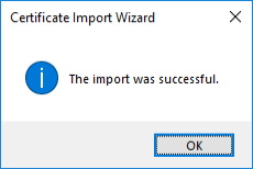 - On the Completing the Certificate Import Wizard dialog, click Finish.