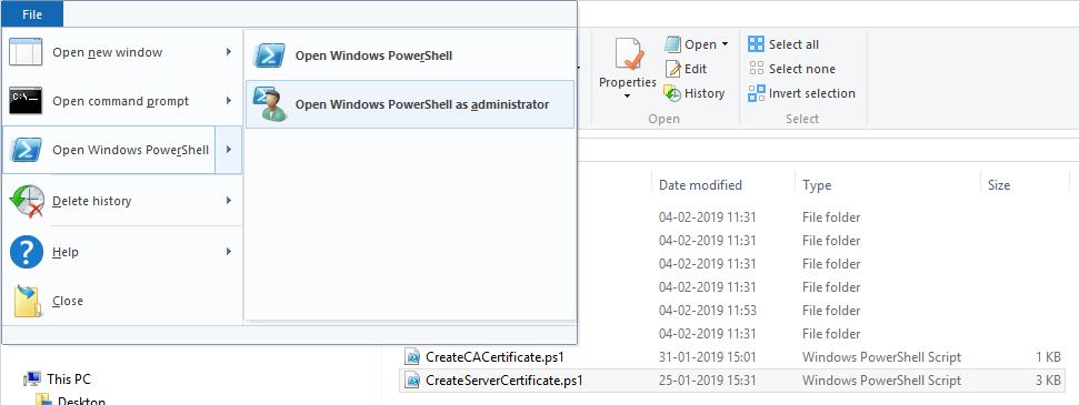 C:\Certificates\CreateCACertificate.ps1. - In File Explorer, go to C:\Certificates and select the CreateCACertificate.ps1 file.