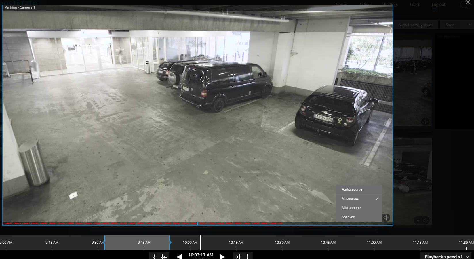 - Play back audio from camera recordings in investigation mode