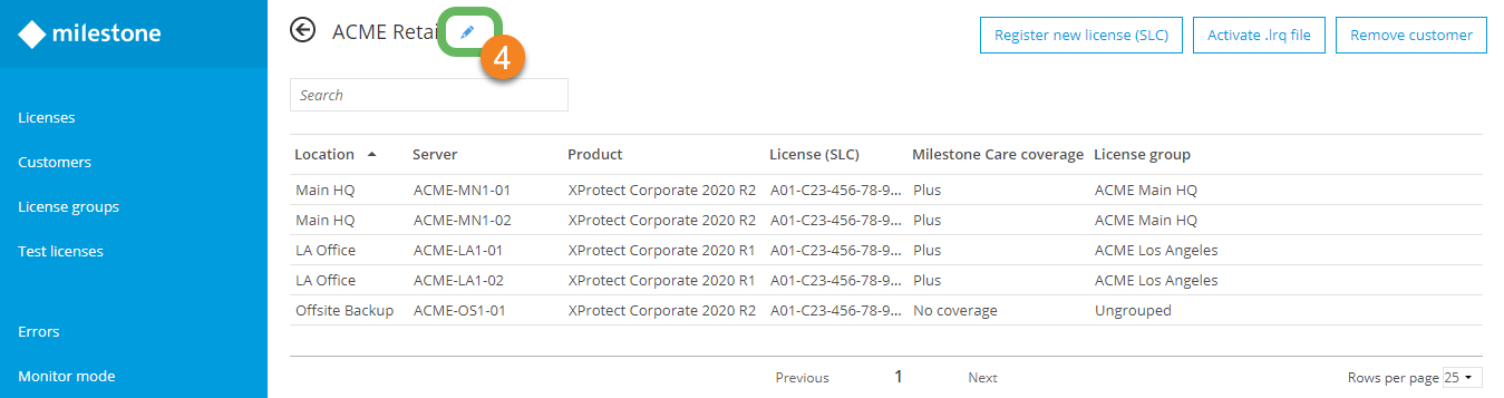 Edit the name of a customer to change the way that it appears in Milestone Customer Dashboard: