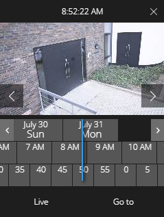 To play back video from a specific point in time, use the time picker. You can find the time picker on both the Live tab and the Investigate tab.