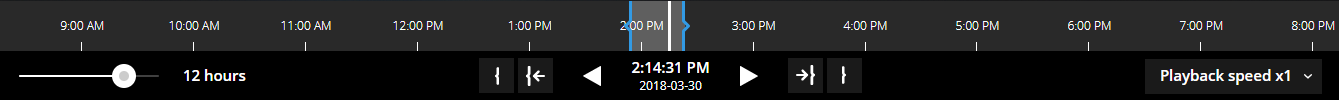 In the bottom-left corner of the timeline bar, drag the slider to change the time span. This option lets you define a precise time span for playing back or downloading the video. |