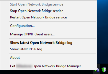 On the Milestone Open Network Bridge Manager tray icon, select Manage ONVIF client users.