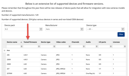 - Open this link (https://www.milestonesys.com/da/community/business-partner-tools/supported-devices/).