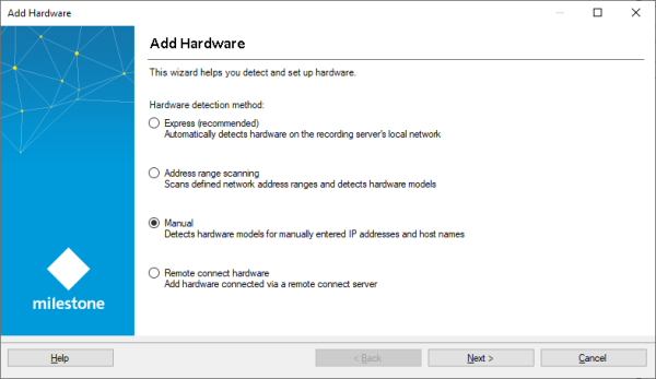 Note: The XProtect VMS cannot be autodetected, so the driver must be selected manually.