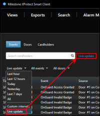 Choose the Live update time range to view a real-time display of access control events.