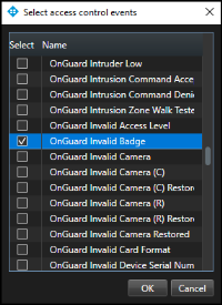 Choose a specific OnGuard event from this list.
