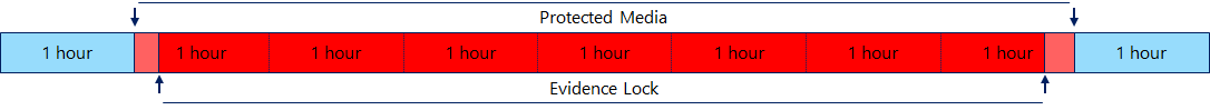 If the selected time span for the evidence lock spans multiple one-hour segments in the media database, all segments it spans are locked and protected.