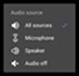 In playback mode, when you tap (Android) or (iOS), it shows that you can listen to incoming and outgoing recorded audio while playing back a video recording and that you can select the audio source that you want to listen to.