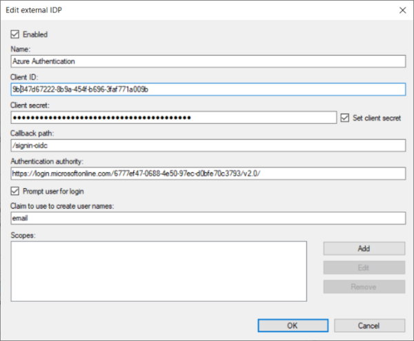 Client ID – provided by the external IDP