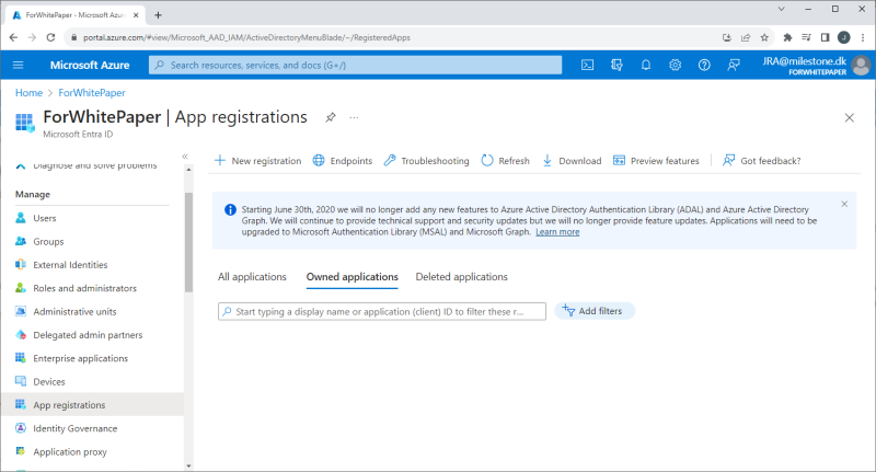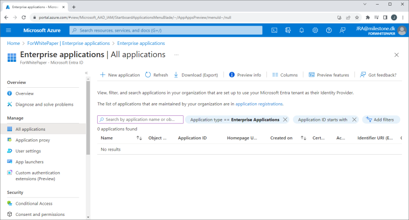 The screenshots and descriptions in this white paper will only provide a very high-level overview of the steps and areas that must be configured for the XProtect VMS to use Microsoft Entra ID’s IDP functionality. Furthermore, please note that Microsoft Entra ID’s interface, configuration flow and settings might have changed after the publication of this white paper.