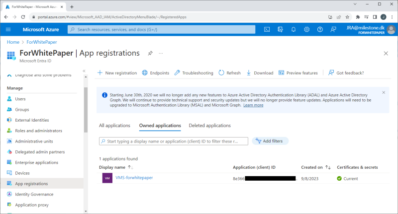 However, for the content of this white paper, Milestone’s Microsoft Entra ID account (Previously named Azure Active Directory) has been configured to enable an XProtect VMS IDP integration, and the text and screenshots that apply to the Microsoft Entra ID configuration provide an example of what needs to be configured in Microsoft Entra ID to allow the XProtect VMS to integrate user authentication with Microsoft Entra ID.