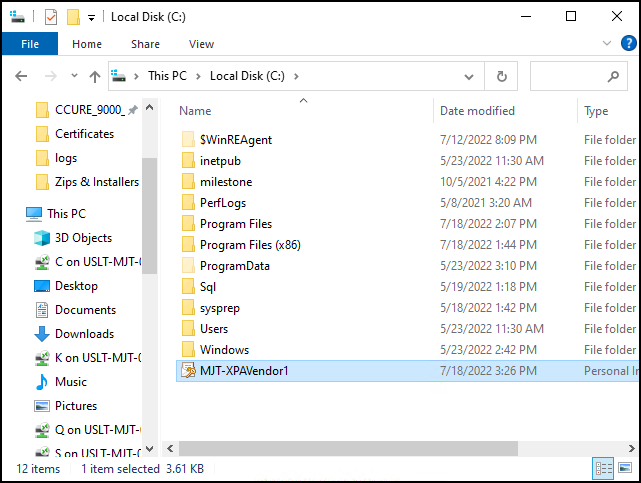 1. By default the script generates the certificate at the C:\ file location. Copy the file and move it to the server hosting the victor web service.