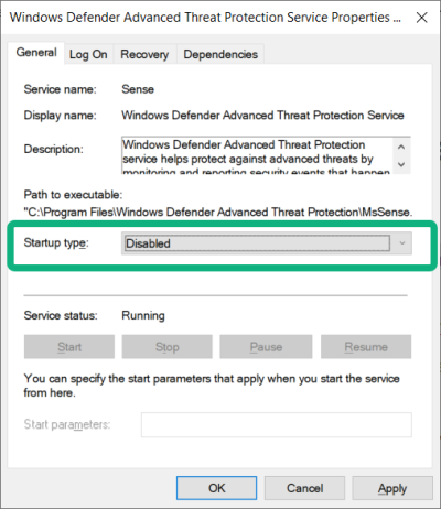 Scroll down to Windows Defender Advanced Threat Protection Service.